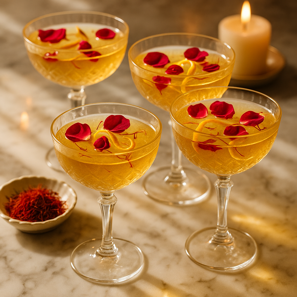Looking to move beyond the standard wine or cocktail? Saffron-infused beverages deliver refined, welcoming alternatives. Picture sparkling water enhanced with saffron’s golden hue, a hint of rose, and a twist of citrus—simple, elevated, and truly memorable.